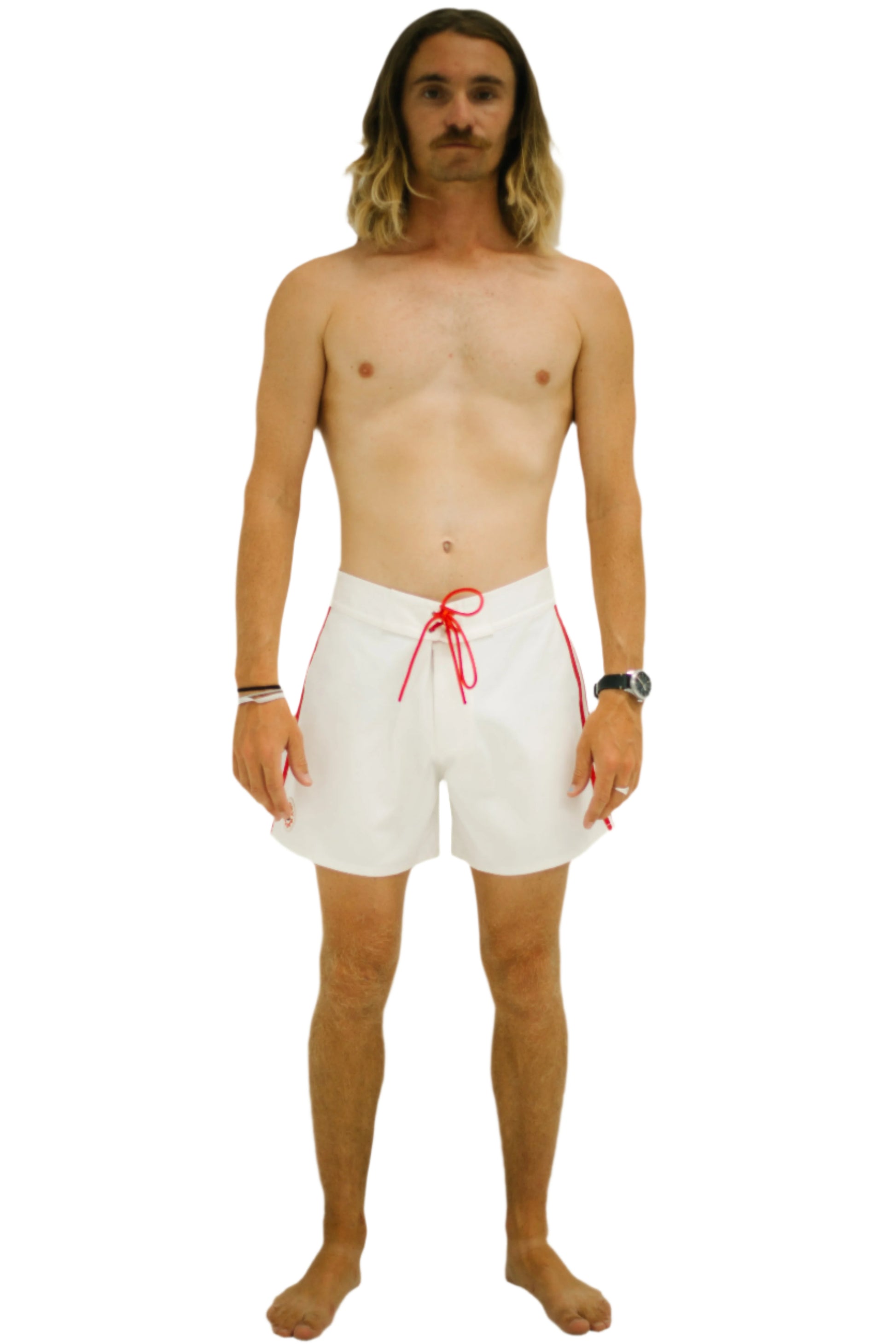 We have designed a low waisted , A-frame board short. Supporting you in all the right areas, with the freedom to have some fun. Featuring an adjustable waist with Marine grade cord. The ‘Original’ red stripes on white is a defined vintage style. Hand crafted and designed by Annalise in Western Australia.